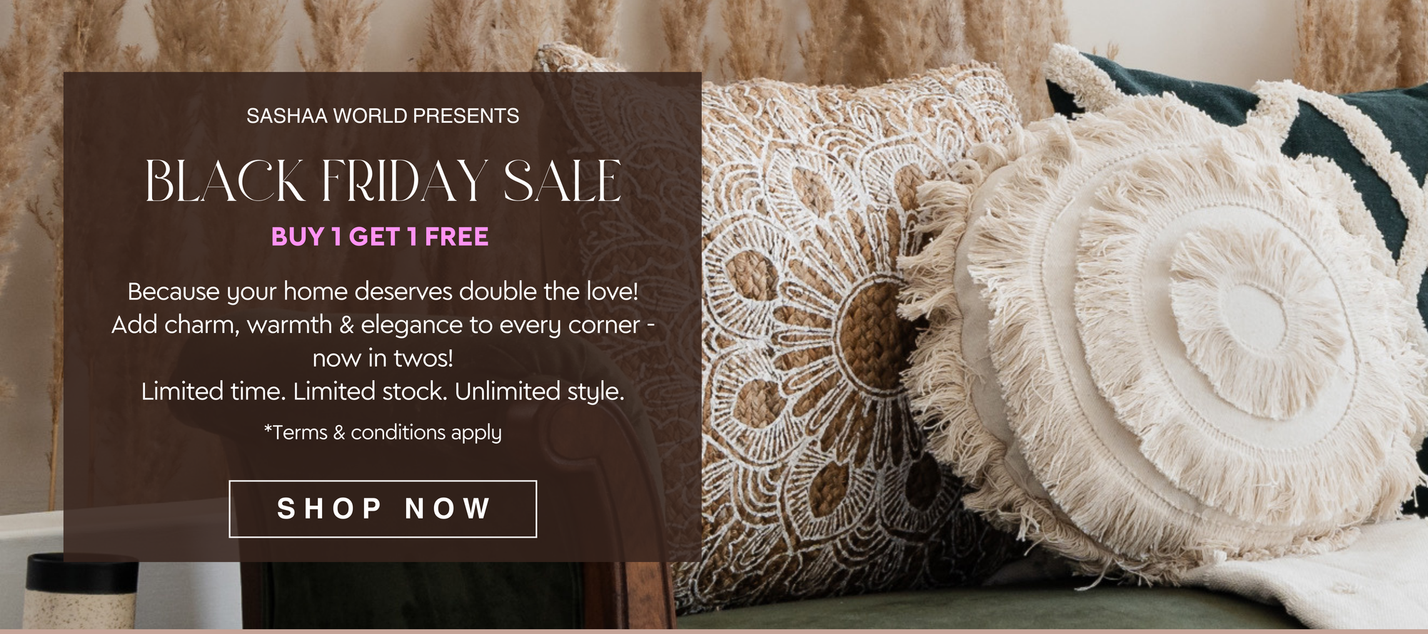 Loved the cushions - colour, texture, material. All 5 star. And loved the sweet note and gift from Sashaa World. Thank You :)