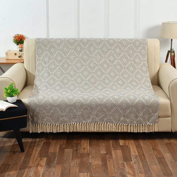 Zig-Zag Pattern Grey Ivory Woven Throw