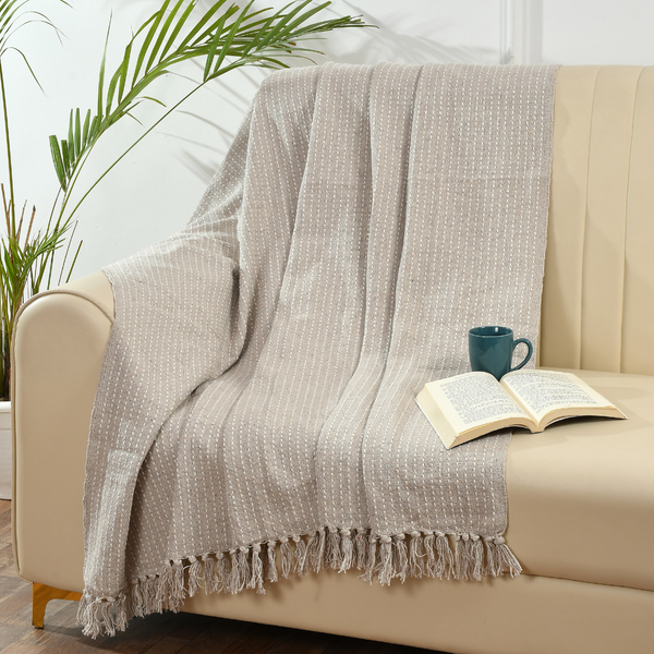 Beige Woven Cotton Throw